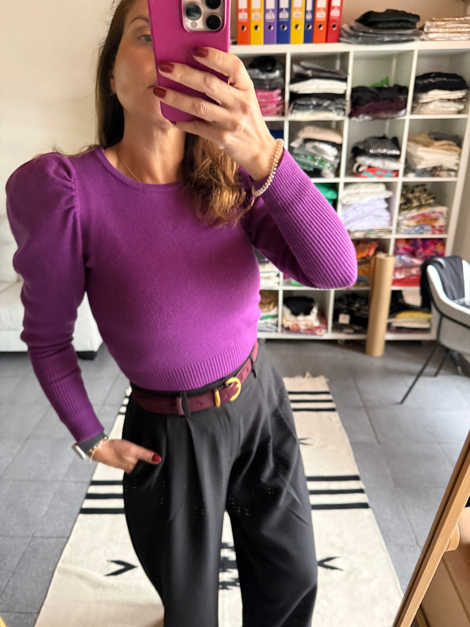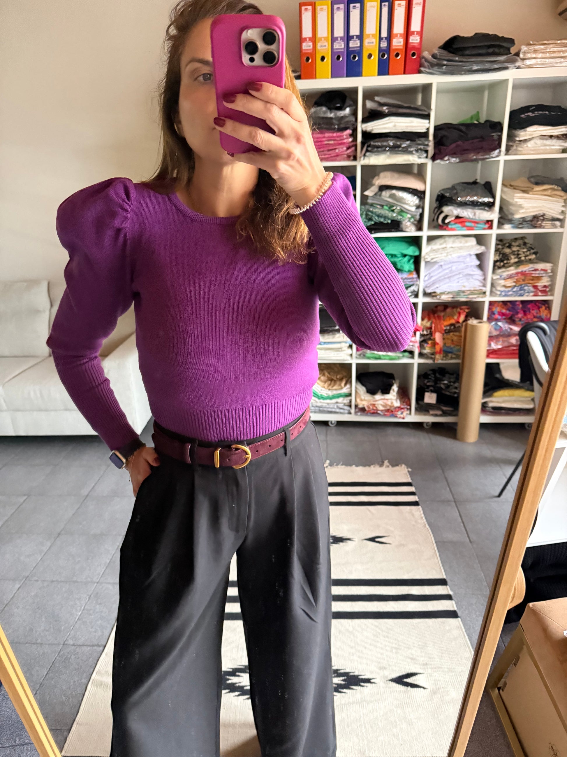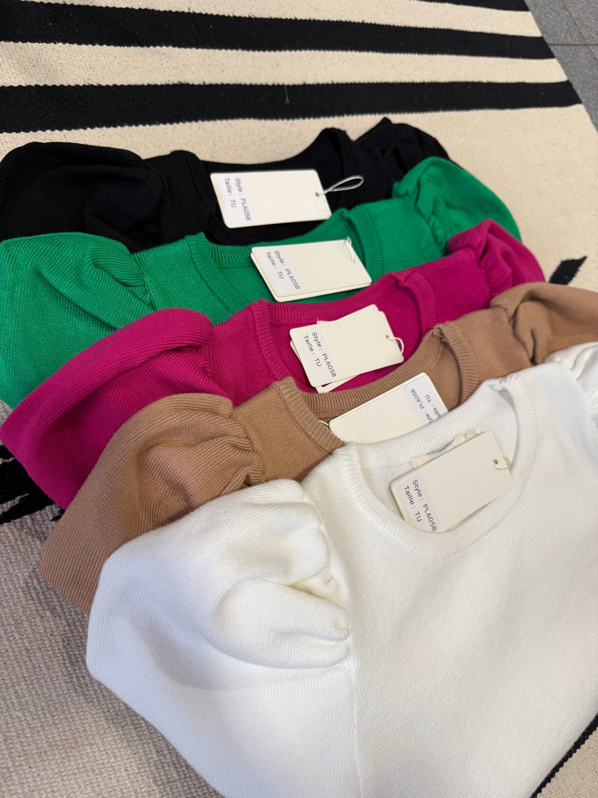 Malha de manga comprida com detalhe balão no ombro. O tecido macio e elástico ajusta-se ao corpo de forma natural, enquanto a estrutura dos ombros adiciona um toque sofisticado e feminino. Agora em saldos . (Antes - 25.90€)