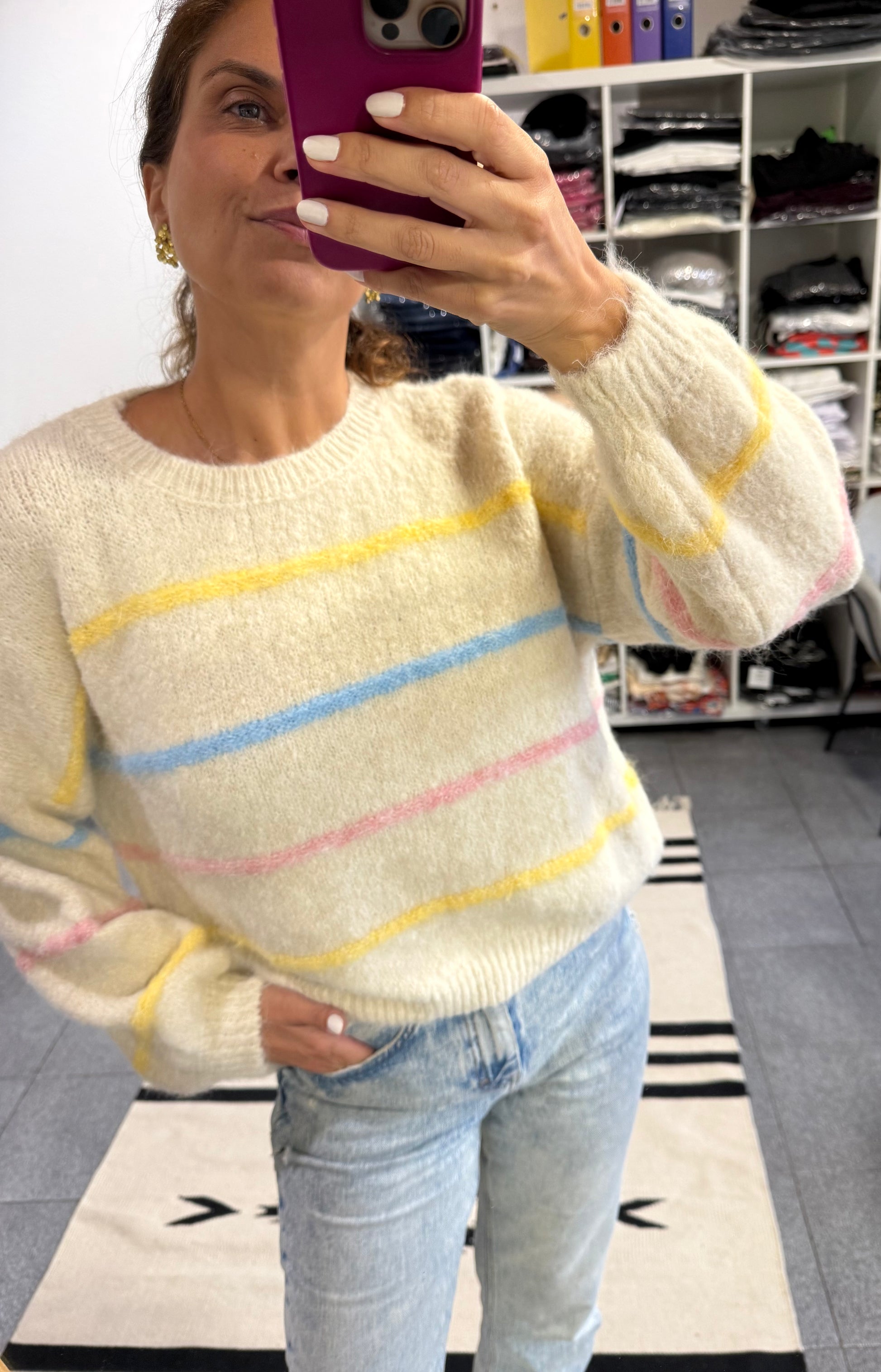 Com riscas delicadas, em tom pastel, traz um toque de cor subtil ao teu guarda roupa, sem perder a elegância descontraída que adoras!